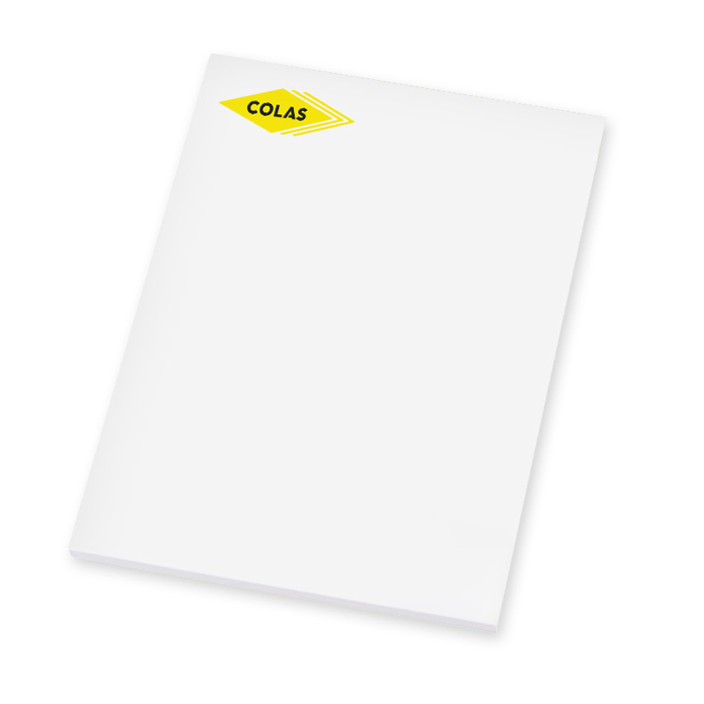 Impression logo en jaune et noir sur chaque feuille