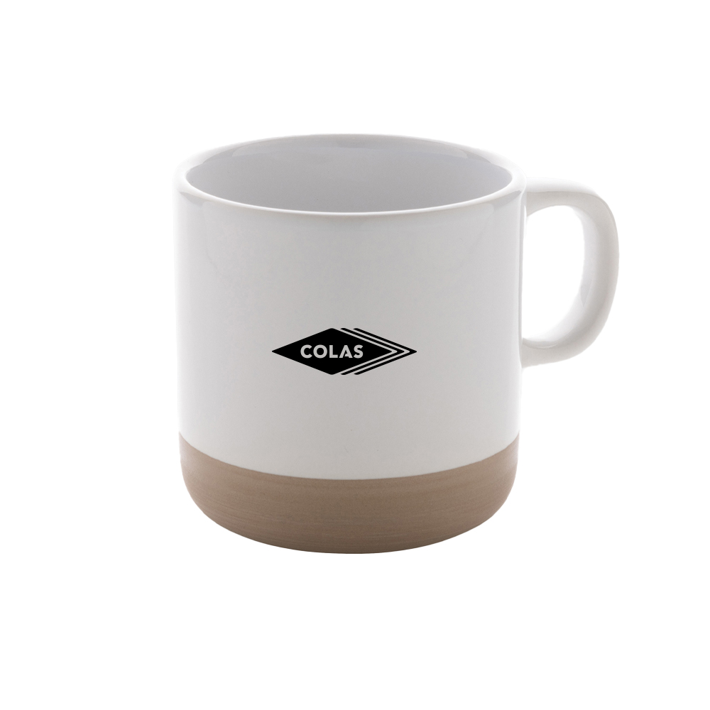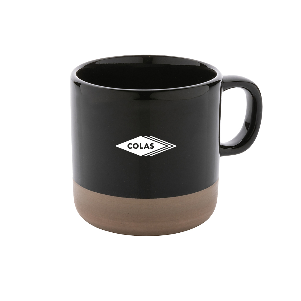 Mug 360 ml en céramique au corps émaillé et base cuite naturelle.